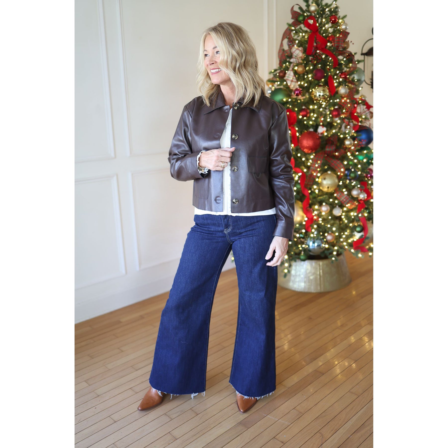 Add a little edge to your wardrobe with the Brinson Brown Faux Leather Jacket. Featuring a sharp collared design, button-front closure, and long sleeves, this jacket keeps you stylish and cozy. Front pockets add practicality without sacrificing flair, while the lined interior ensures extra comfort. Perfect for those who want to look cool while feeling warm!